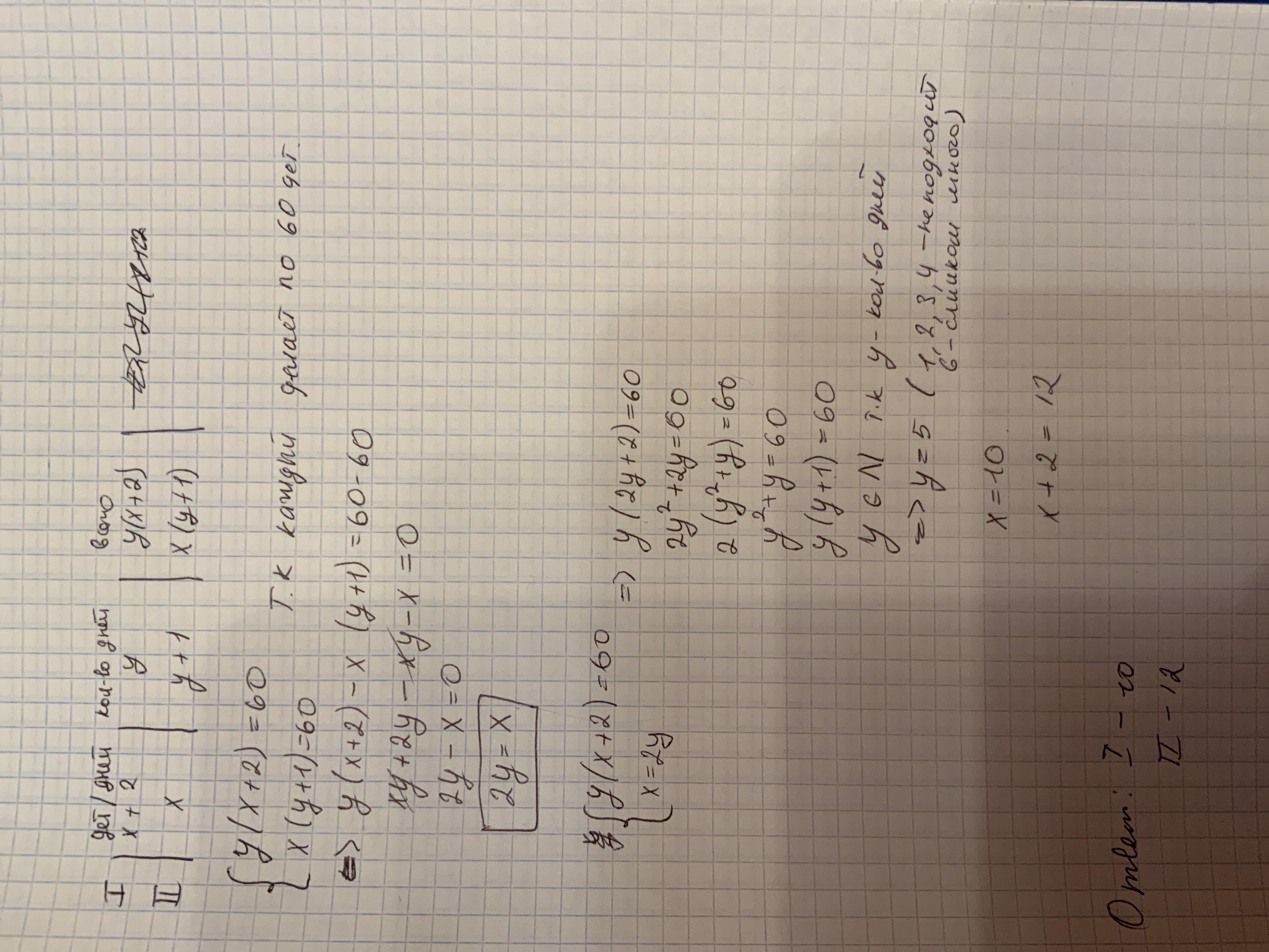 Два токаря должны изготовить по 60 деталей. Первый токарь в день изготавливал на 2 детали больше, чем второй. Поэтому первый закончил на день раньше. Сколько деталей в день изготавливал каждый токарь?
