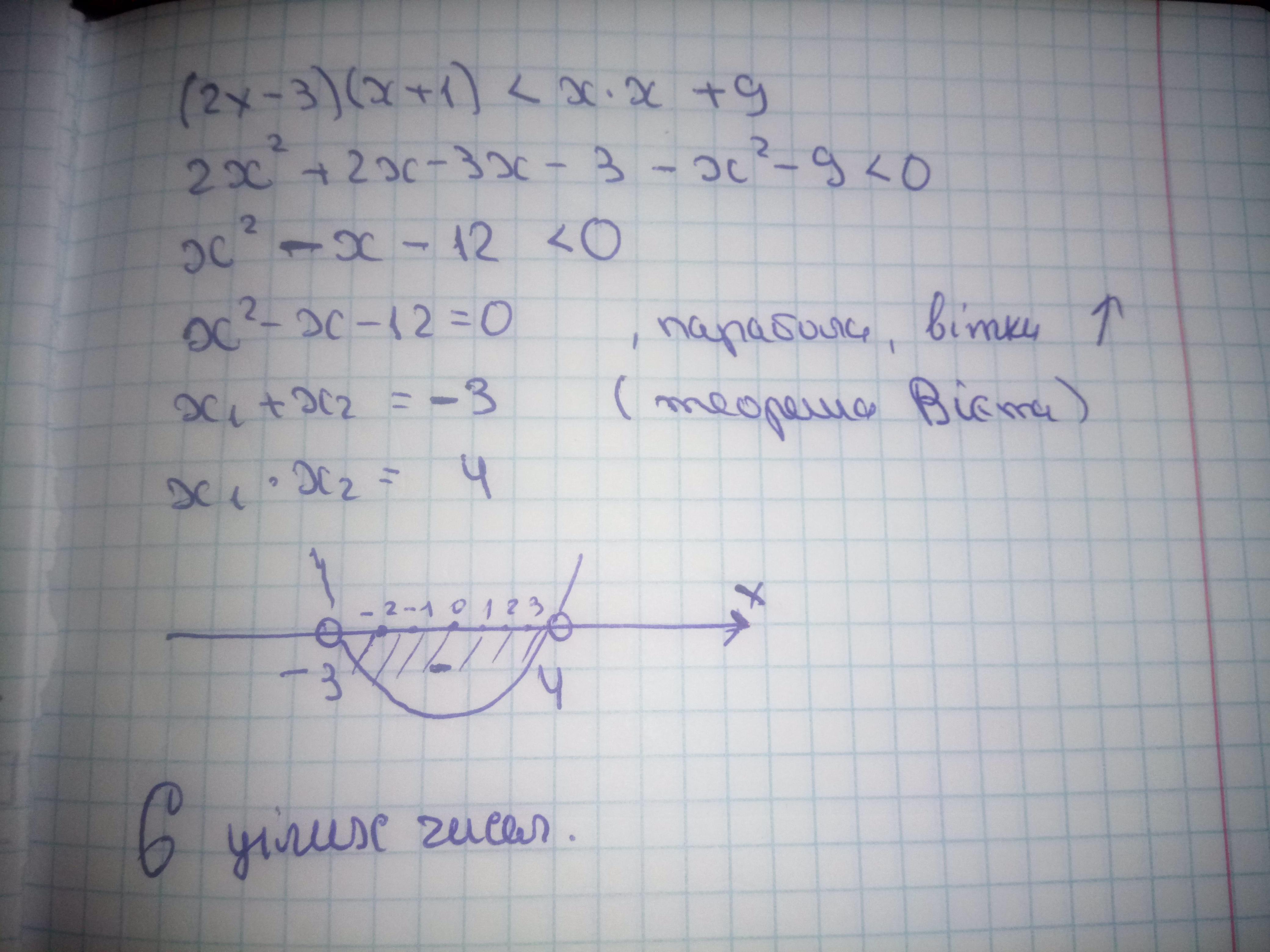 2. Скільки цілих чисел містить множина розвязків нерівності:(2х-3)(х+1) <x*x+9? (*позначено дію множення)