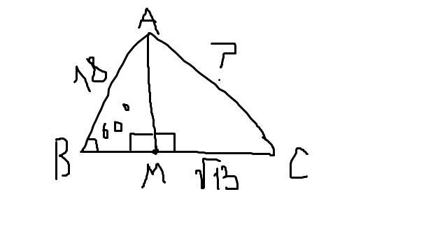 Найдите сторону АС, если СМ = √13 см, угол АВС равен 60, а сторона АВ