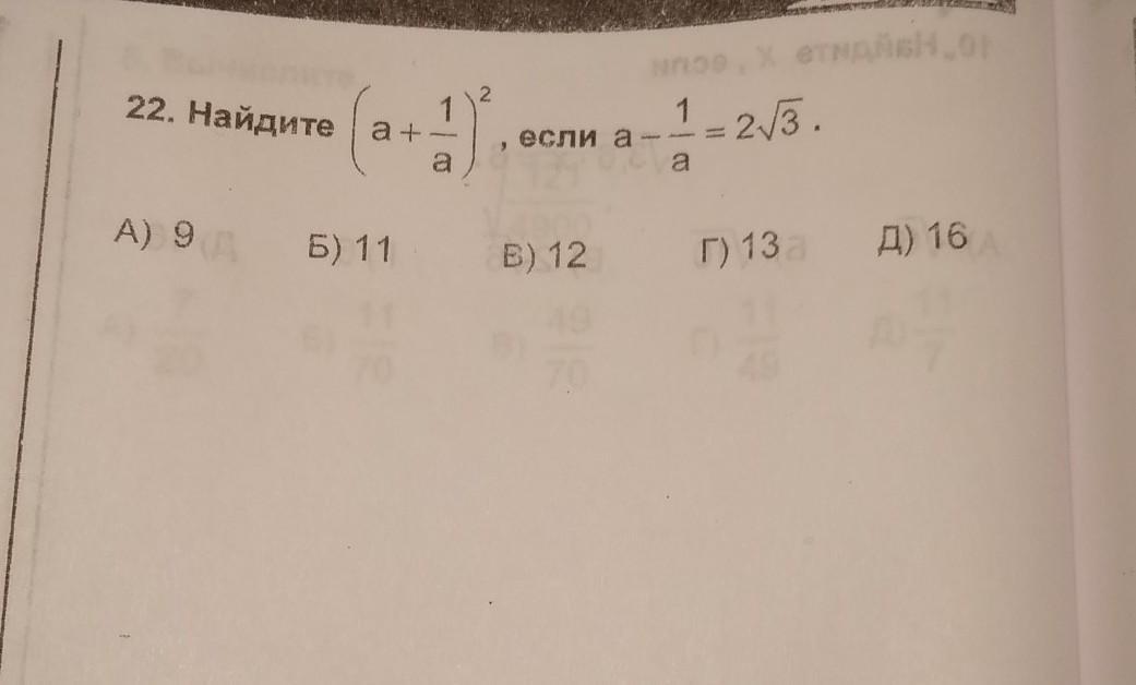 Найдите (а+1/а)^2 если (а-1/а)=2V3