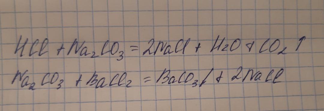 Карбонат натрия вступает в реакцию с соляной кислотой и хлоридом бария. (выпадает осадок)