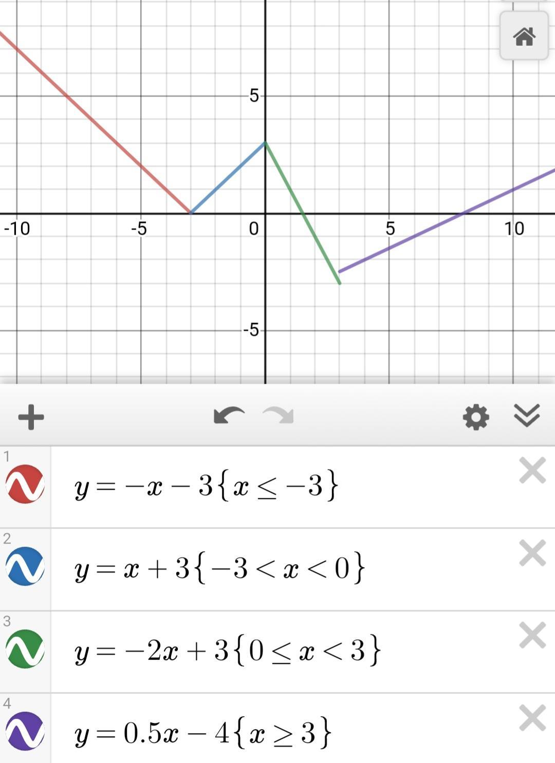 1) f(x)= –x–3 , если х ⩽ –3. Это значит, что если х больше –3, то этой функции уже не существует.
