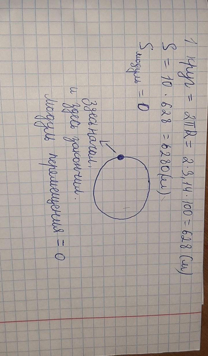 Конькобежец пробежал 10 кругов на стадионе радиусом 100 м Пройденный путь и модуль перемещение соответственно равны?