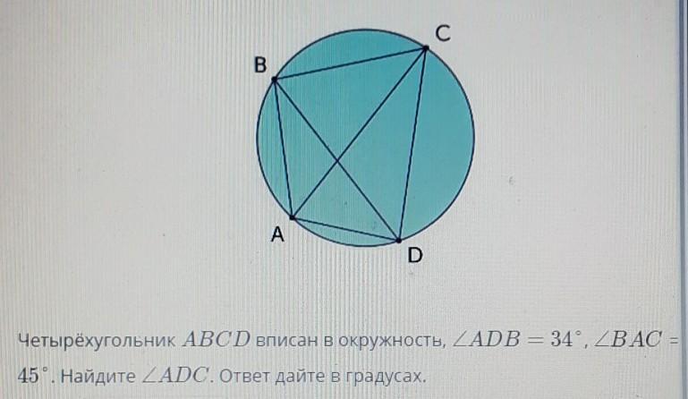 Окр. Or -опис., ∠ADB=34°, ∠BAC=45°