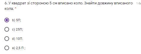 6. квадрат зі стороною а =5 см, тогда r = 5/2 = 2.5 см