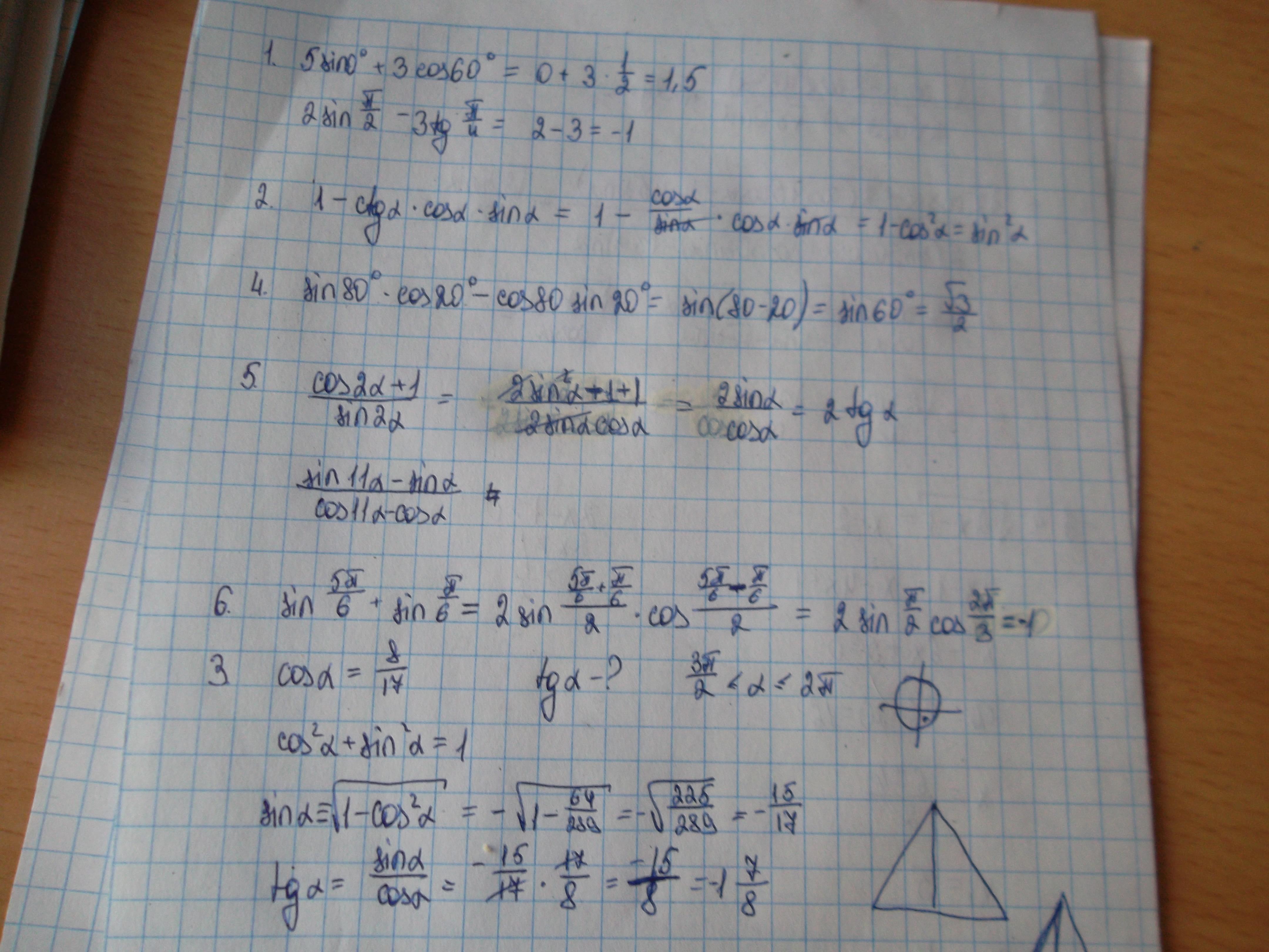 IV ⇒ sin '-' ⇒ sin α = -15/17