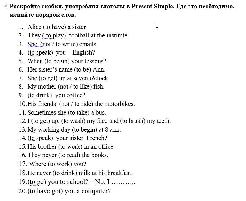 13. My working day begins at 8 a.m.