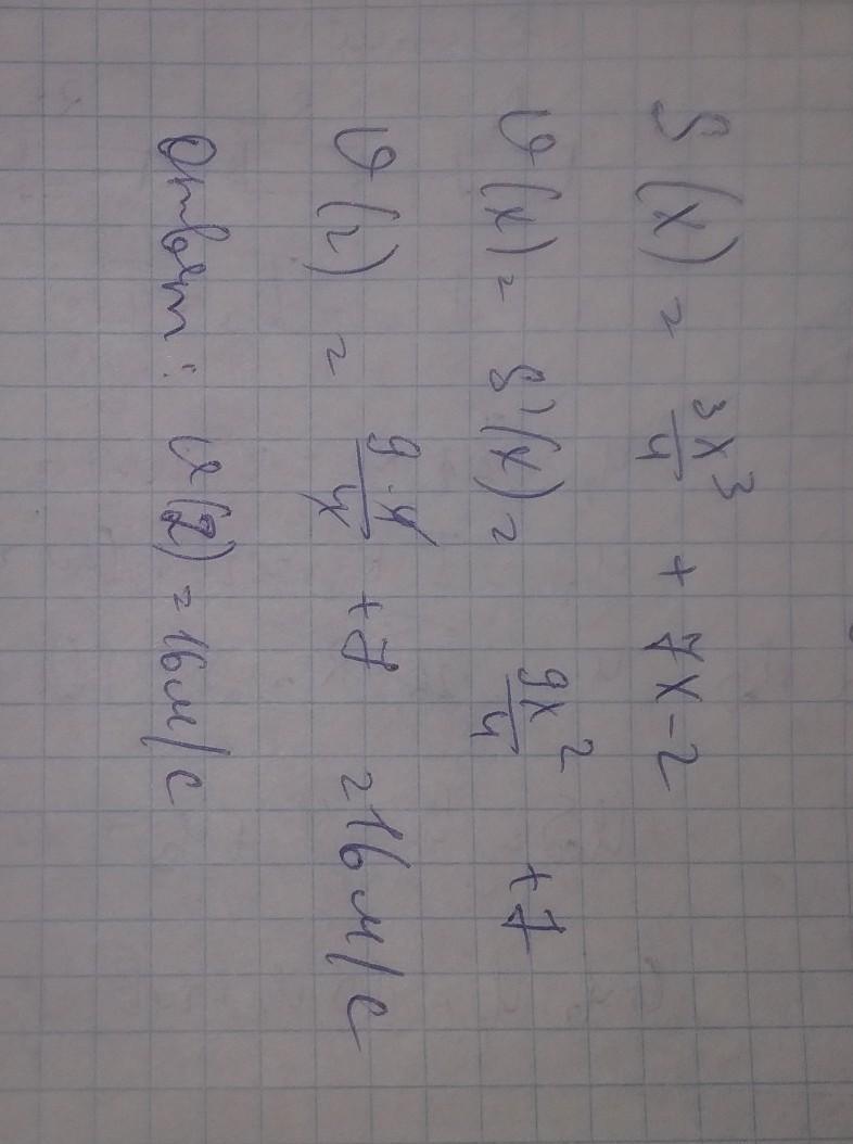 Производной расстояния является скорость, следовательно, взяв производную с данной функции нашли зависимость скорости от времени, и подставили вместо х 2:)