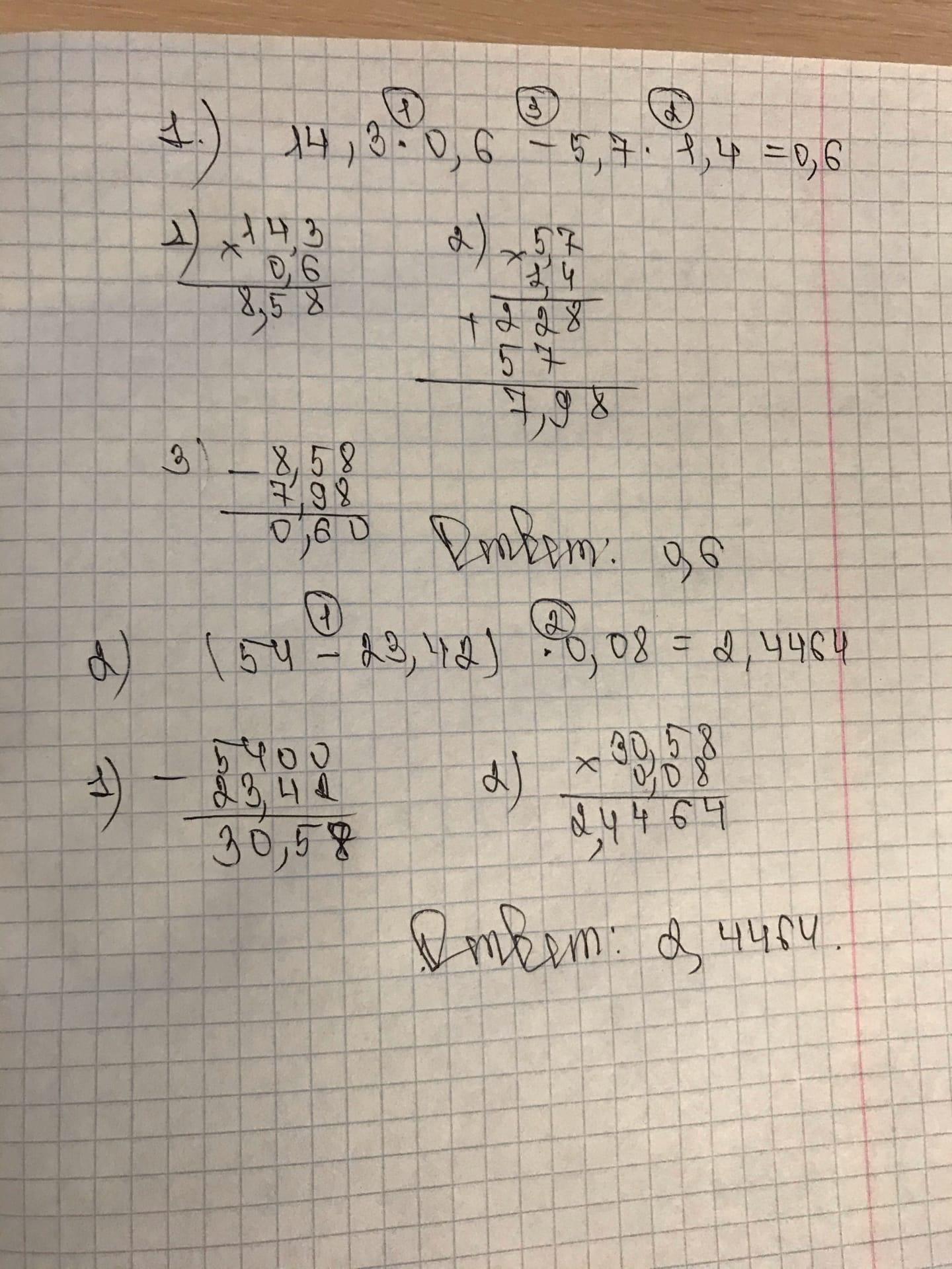 1. 14,3•0,6 -5.7 • 1,4 =0,6