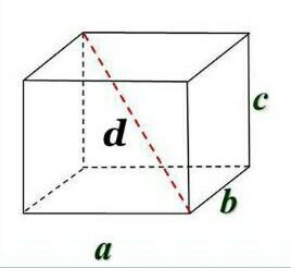 "Квадрат диагонали прямоугольного параллелепиппеда равен сумме квадратов 3 его измерений". (d = √(a² + b² + c²), где d - диагональ прямоугольного параллелепиппеда; а, b, c - 3 его измерения.)