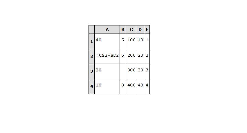 По условию задачи из ячейки A2 скопировали формулу в ячейку В3, то есть мы переместились на позицию вниз и на позицию вправо, значит и значения в формуле: =C$2+$D2 должны изменить свое значения на позицию вниз и вправо: С2 заменилось бы на D3, но знак $ - означает абсолютную ссылку (неизменяемая при перемещении), значит меняется только значение столбца С на D а строка 2 остается неизменной: получается D$2. Аналогично и с $D2, столбец D не изменяется, а строка 2 меняется на 3 получаем $D3