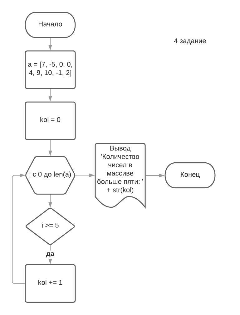 print('Количество чисел в массиве больше пяти: ' + str(kol))