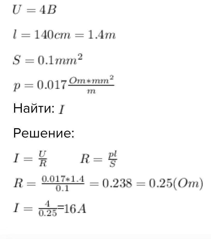 В цепь источника тока, дающего напряжение 4 В, включили кусок стальной проволоки длиной 140 см и сечением 〖0,1 мм〗^2. Какая сила тока установилась в цепи? Удельное сопротивление стали равно