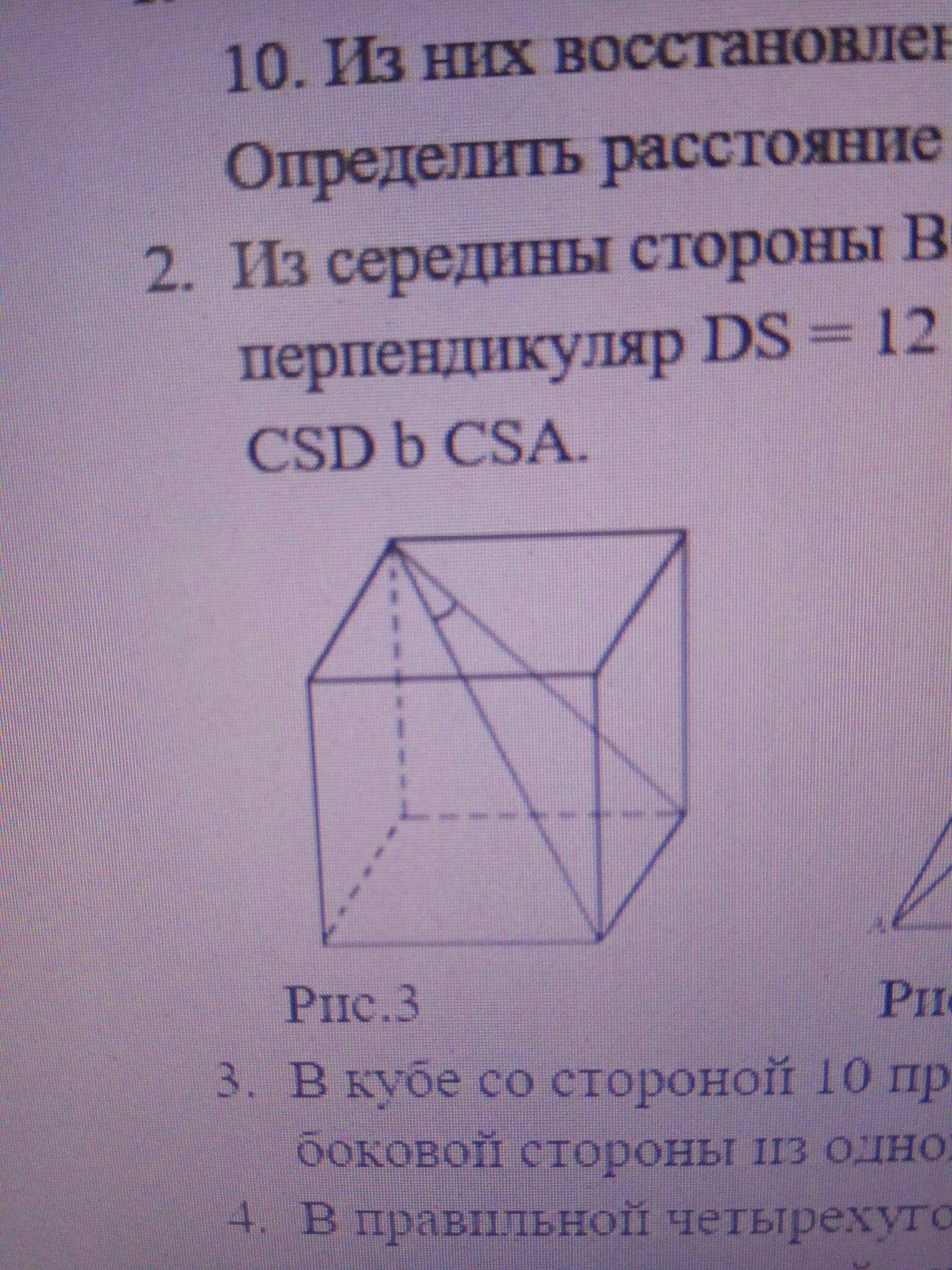 В кубе со стороной 10 проведены большая диагональ и диагональ боковой стороны из одной точки. Найти угол между ними. ПОДРОБНЕЕ