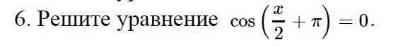 cos\Big(\dfrac{x}{2}+\pi \Big)=0\\\\-cos\dfrac{x}{2}=0\\\\cos\dfrac{x}{2}=0\\\\\dfrac{x}{2}=\dfrac{\pi}{2}+\pi n\ ,\ n\in Z\\\\x=\pi +2\pi n\ ,\ n\in Z