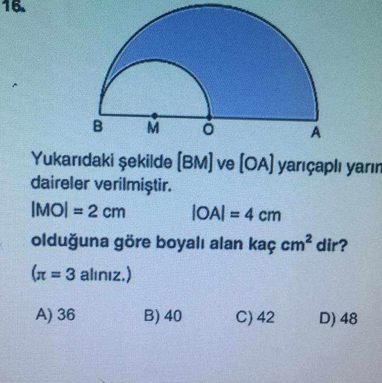 Sbmo=π*MO²/2=3*2²/2=3*4/2=12/2=6 cm²