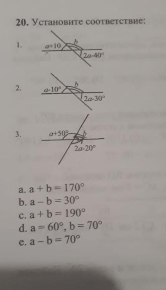 a - 10 + b = 180 (смежные) ====>