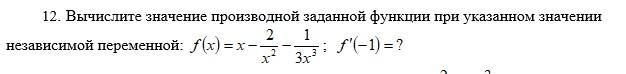 Вычислите значение производной заданной функции при указанном значении независимой переменной: