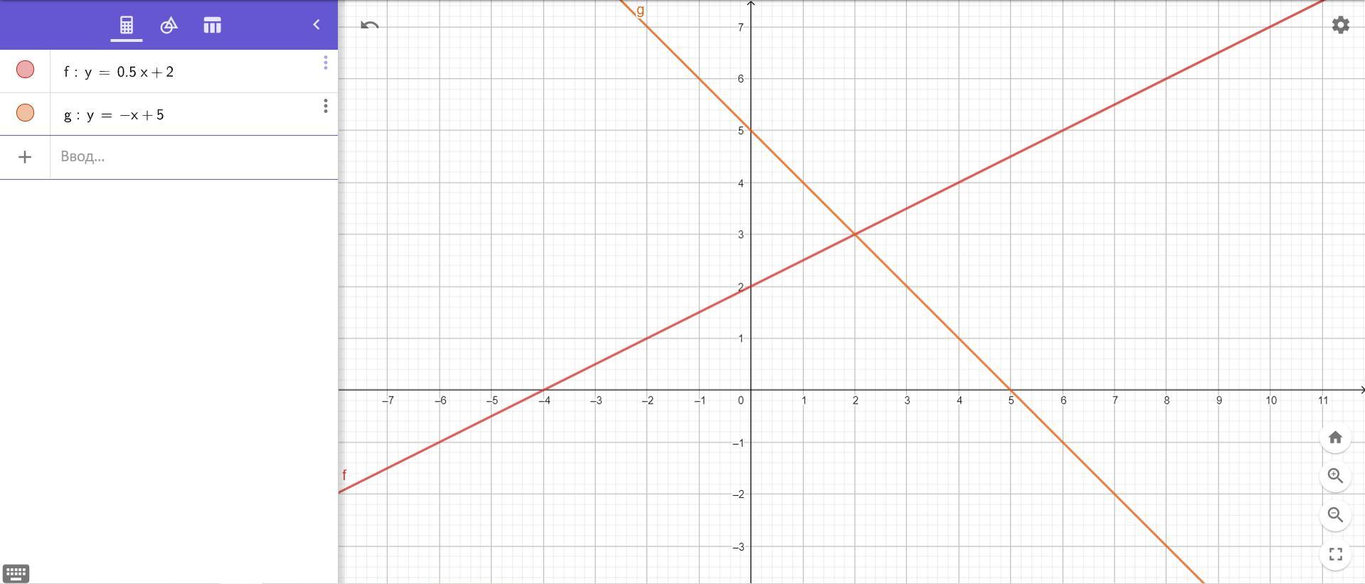 В варианте б нельзя найти площадь между графиками y=0,5x+2 и y=-x+5