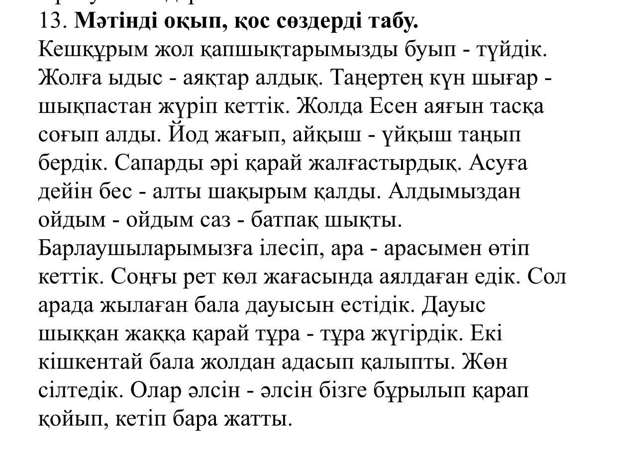 Буып-түйдік, ыдыс-аяқтар, шығар-шықпастан, айқыш-үйқыш, бес-алты, саз-батпақ, ара-арасымен, тұра-тұра, әлсін-әлсін.