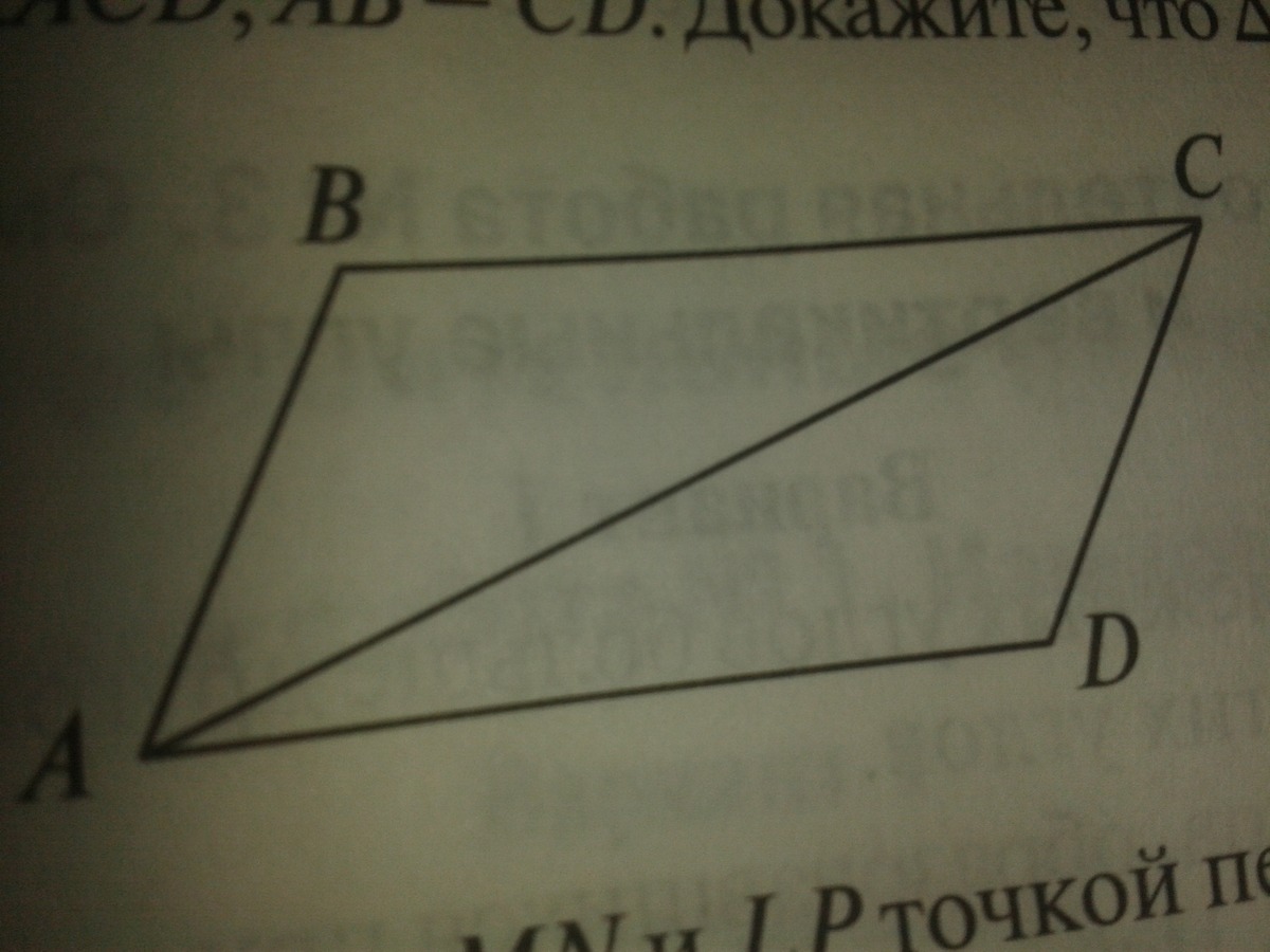 треугольники равны по первому признаку равенства треугольников, т.к. АВ=СД, АС - общая, а углы BAC и ACD равны. ч. т. д.