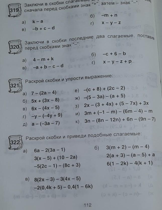 в) 6x-(4x-5)=6x-4x+5=2x+5