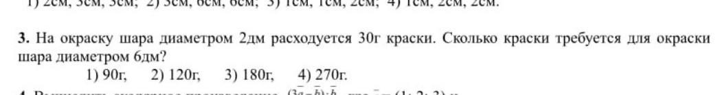 на окраску шара диаметром 2 дм расходуется 30г краски сколько краски требуется для окраски шара 6 дм ( решение)