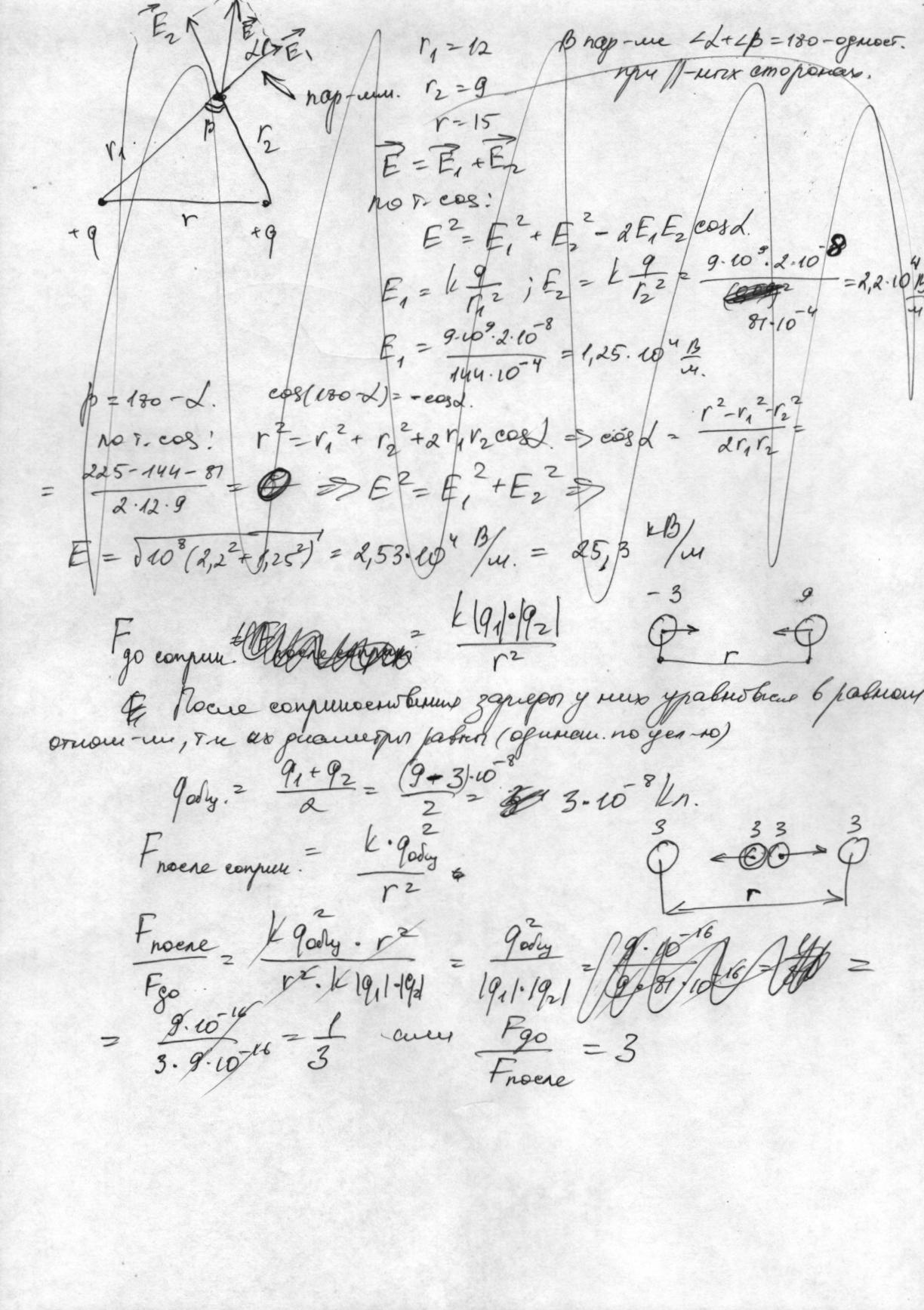 Два одинаковых металлических шарика, имеющих заряды 9·10 -8 Кл и -3·10 -8 Кл, приведены в соприкосновение и разведены на прежнее расстояние. Определите отношение модулей сил взаимодействия шариков до и после соприкосновения.