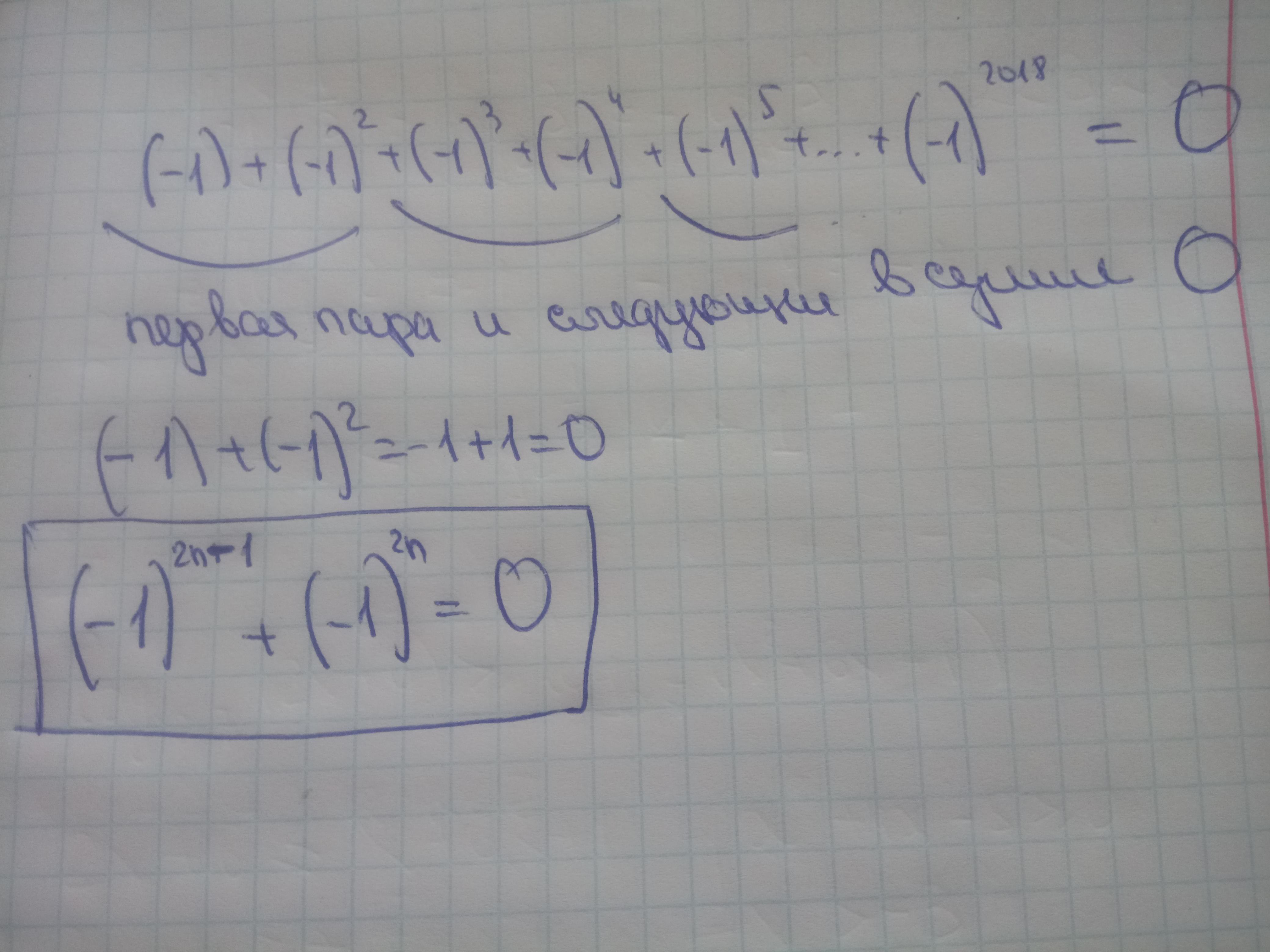 (-1)+(-1)²+(-1)³+(-1)⁴+(-1)⁵+...+(-1)²⁰¹⁸=?