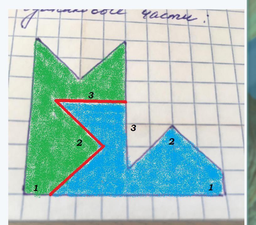 Разрезаем по полученной ломаной. Получим две равных части, напоминающих плывущую птицу.