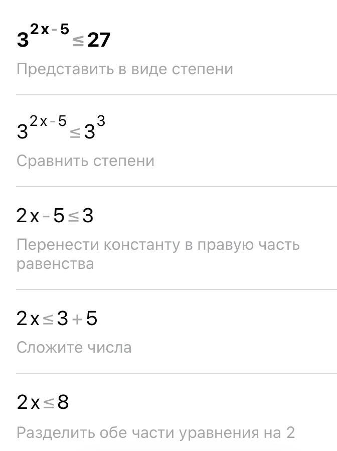 Ответ: так как функция возрастает, то 2*х-5<=3 или 2*х<=4 или х<=4.