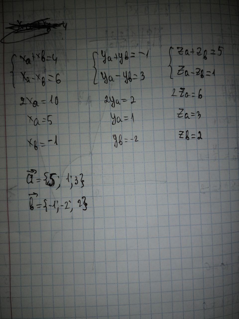 Срочно помощь Знайдіть координати векторів векторів а і а,якщо с=а+в,d=а-в С(4 ,-1,5) d(6,3,1) Там надо зробити рівнянням потрібно скласти і знайти невідому