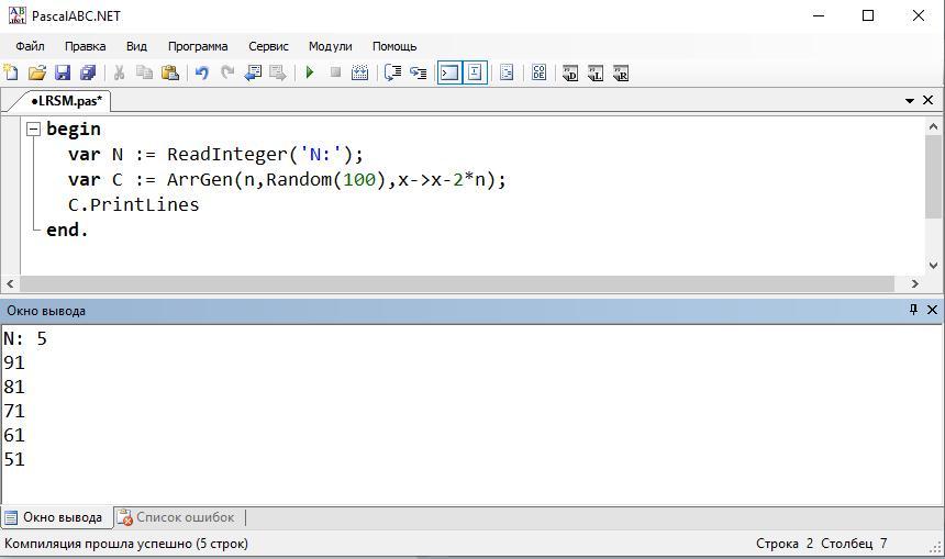 Дан первый элемент массива С, вычисленный случайным образом. Сформировать массив С(N) в котором каждый последующий элемент массива меньше предыдущего на удвоенную размерность массива. Вывод ответа осуществить в столбец. 2) Дана таблица М(7,7). Заполнить её случайными числами. Найти общее произведение элементов стоящих в строках под четными номерами в таблице М. Вывести на экран исходную таблицу М.