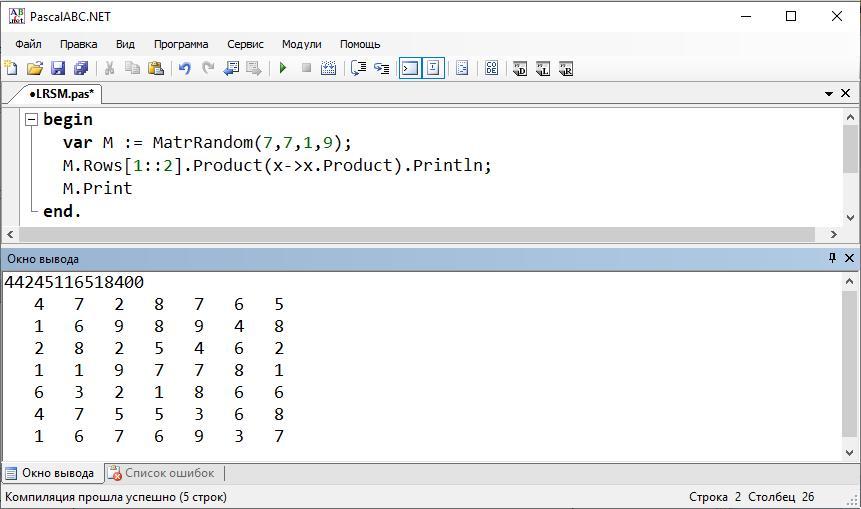 - M.Rows[1::2].Product(x->x.Product).Println;