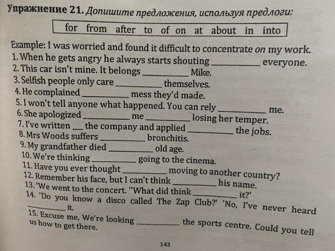 Ответ: 1. at 2. to 3. of 4. about 5. on 6. to/for 7. to/for 8. from 9. from 10. about 11.of 12. of 13. about 14. about 15. for
