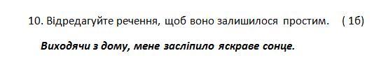 Я (підмет); виходив (присудок); засліплений яскравим сонцем (дієприкметниковий зворот) - речення просте)))))