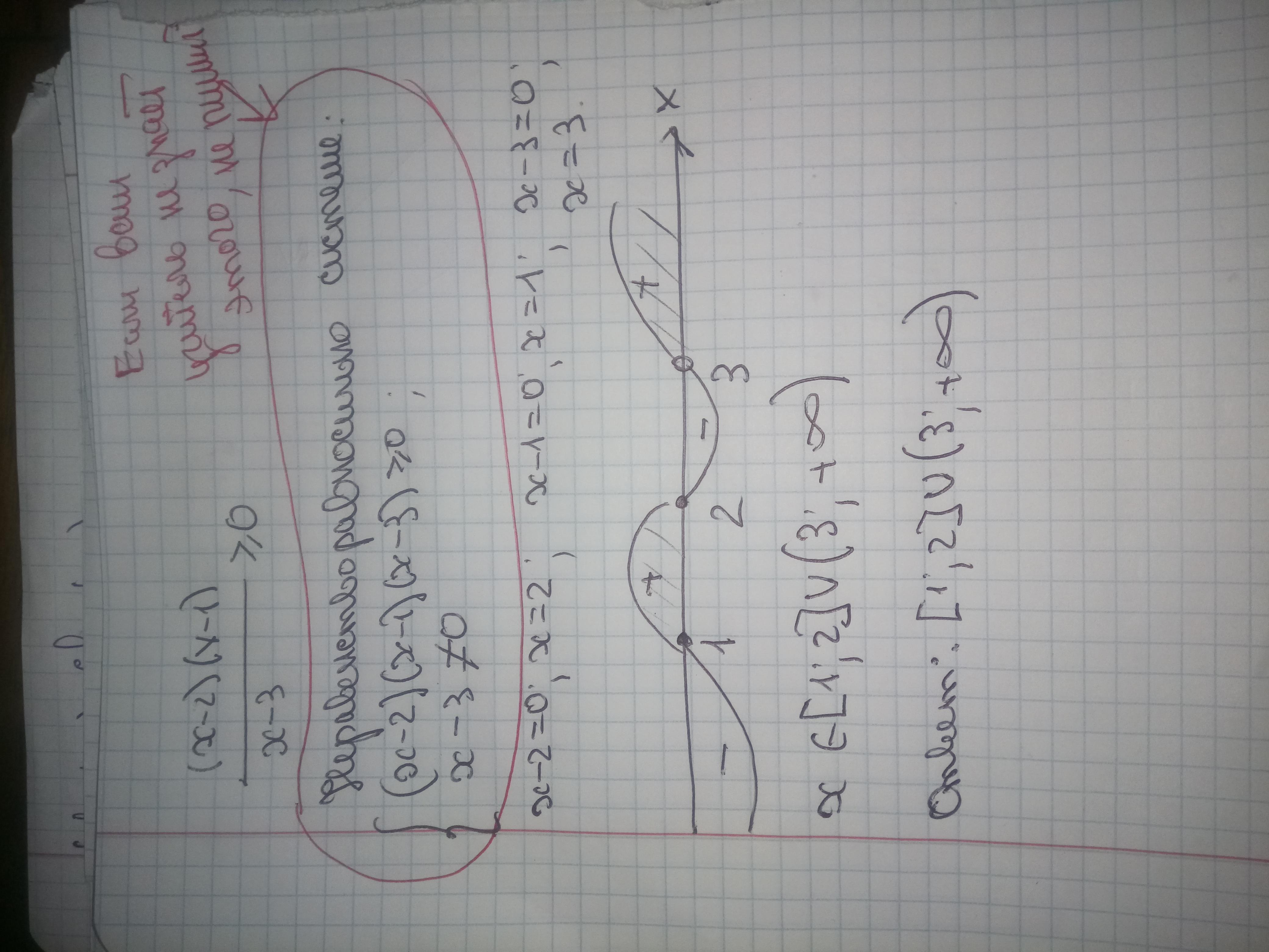 х∈[1;2]∪(3;+∞)