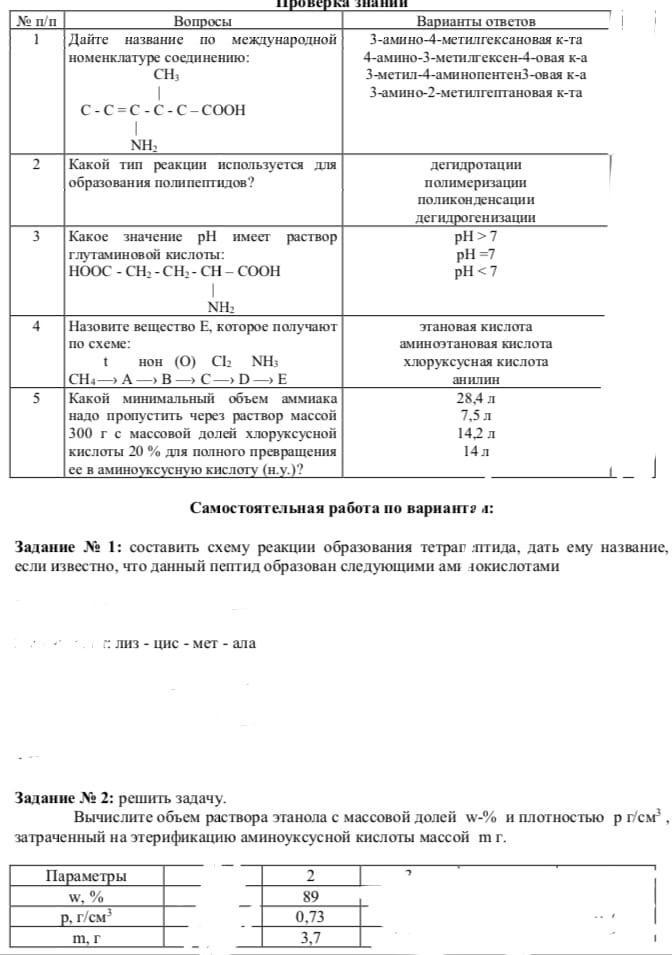 В 1 задании 3-метил-4-аминопентен3-овая к-а