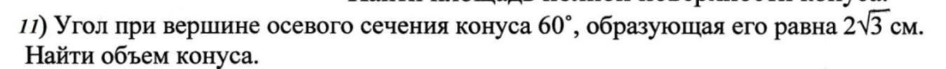 Vконуса = 1/3*п*R^2*H = 9*(корень из3)*п