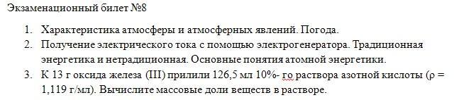 К 13 г оксида железа (III) прилили 126,5 мл 10% раствора азотной кислоты ( плотностью 1,119 г/мл). Вычислите массовые доли веществ в растворе.