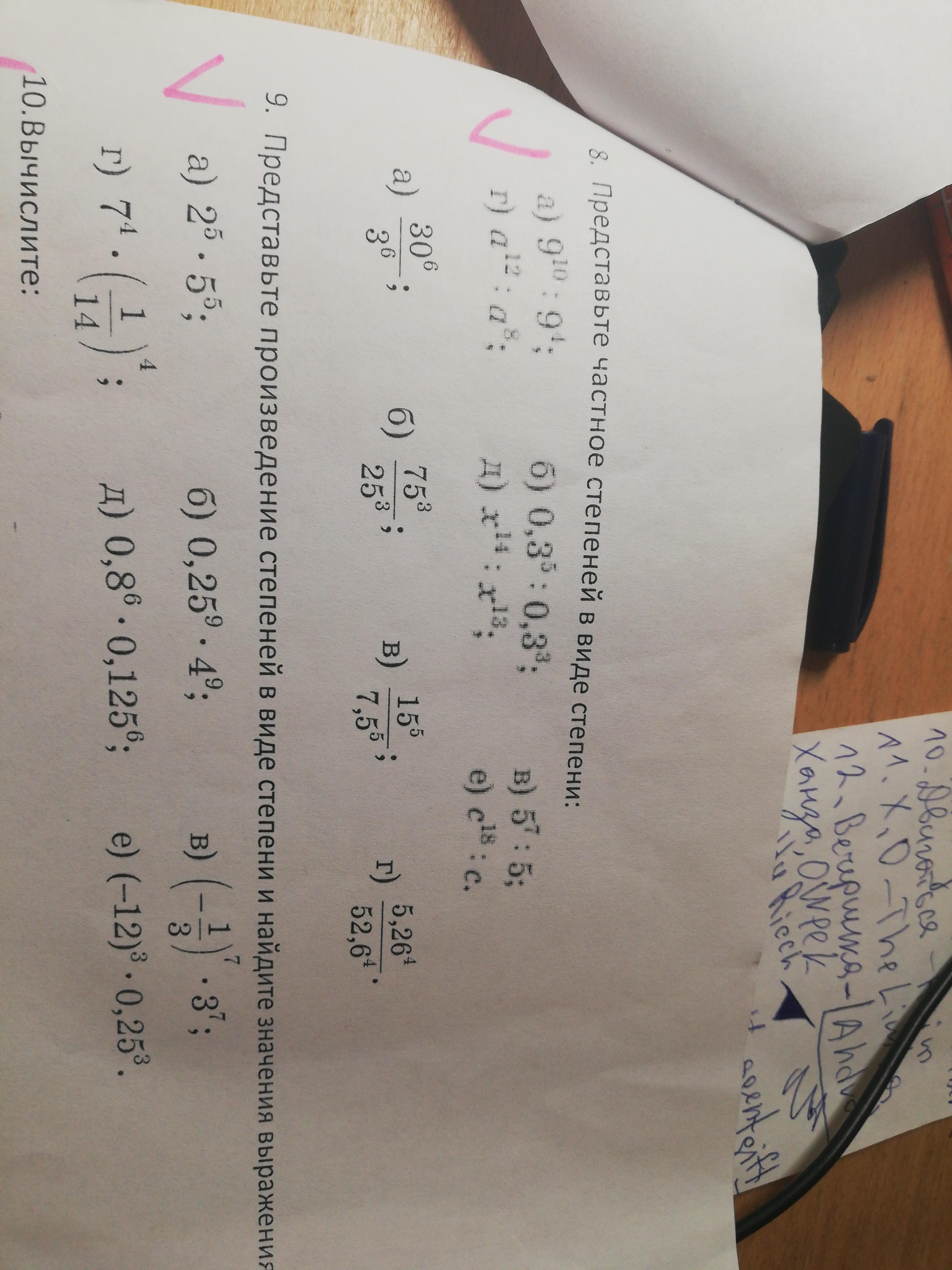 - а)9⁶ б)0,3² в)5⁶ г)a⁴ д)x е)c¹⁷