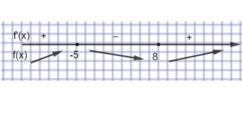Функция убывает, если ее производная отрицательна. Так как функция непрерывна, то она убывает на [- 5; 8]