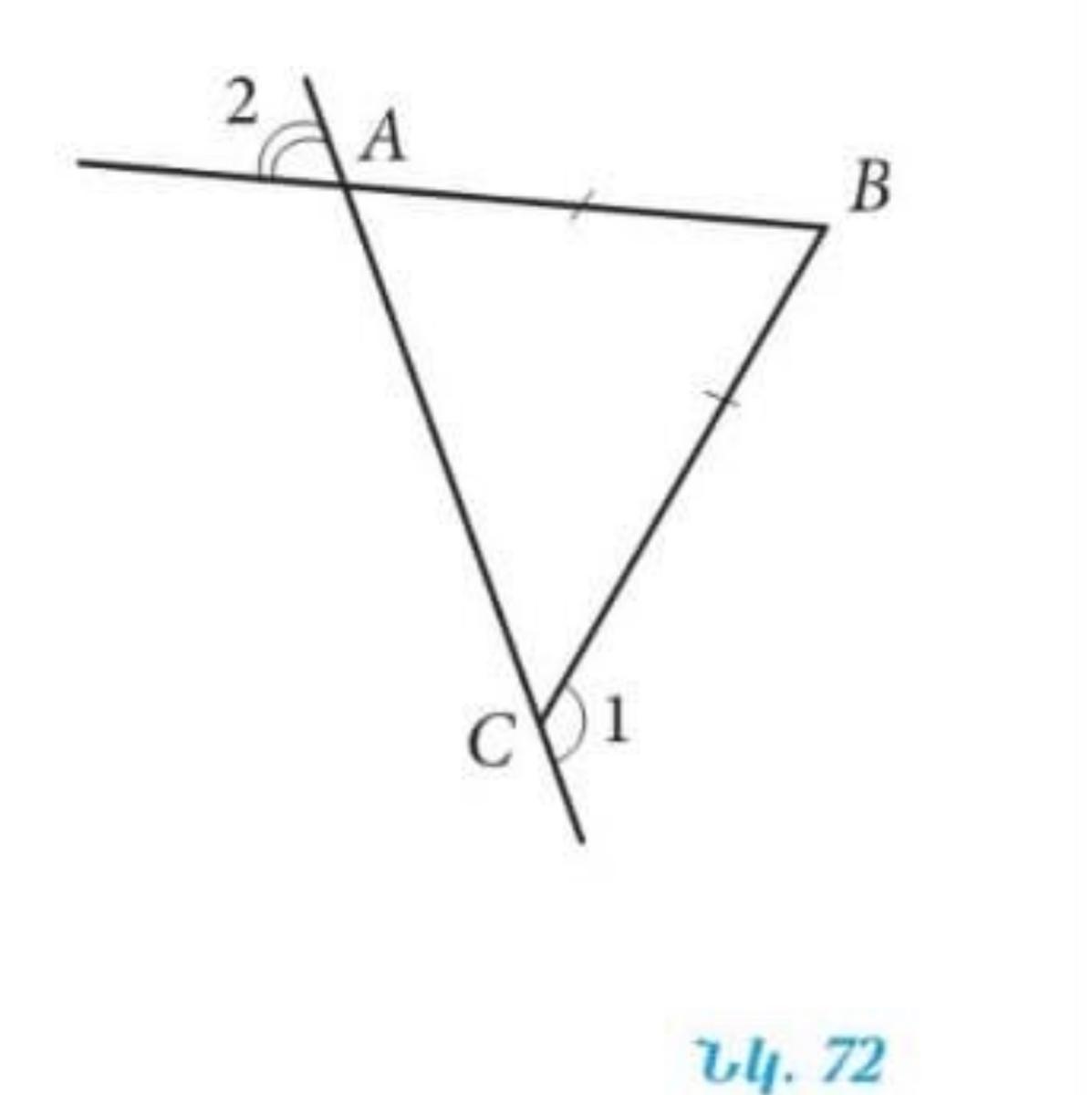 У равнобедренного треугольника углы у основания=, тогда угол А=углу 1=130: угол 2=180-130=50