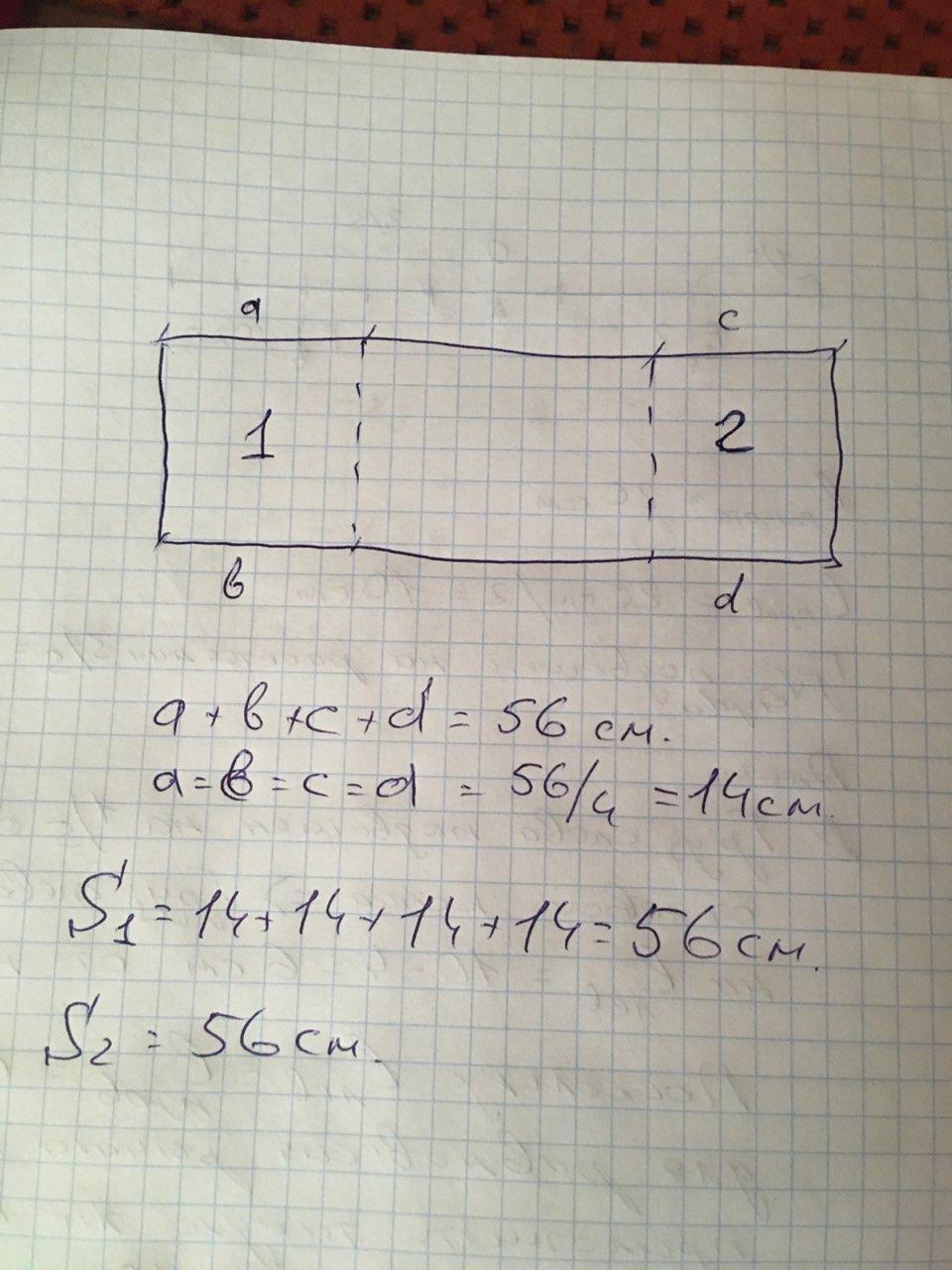 56 см меньше периметра первоначального прямоугольника. Найдите периметр каждого