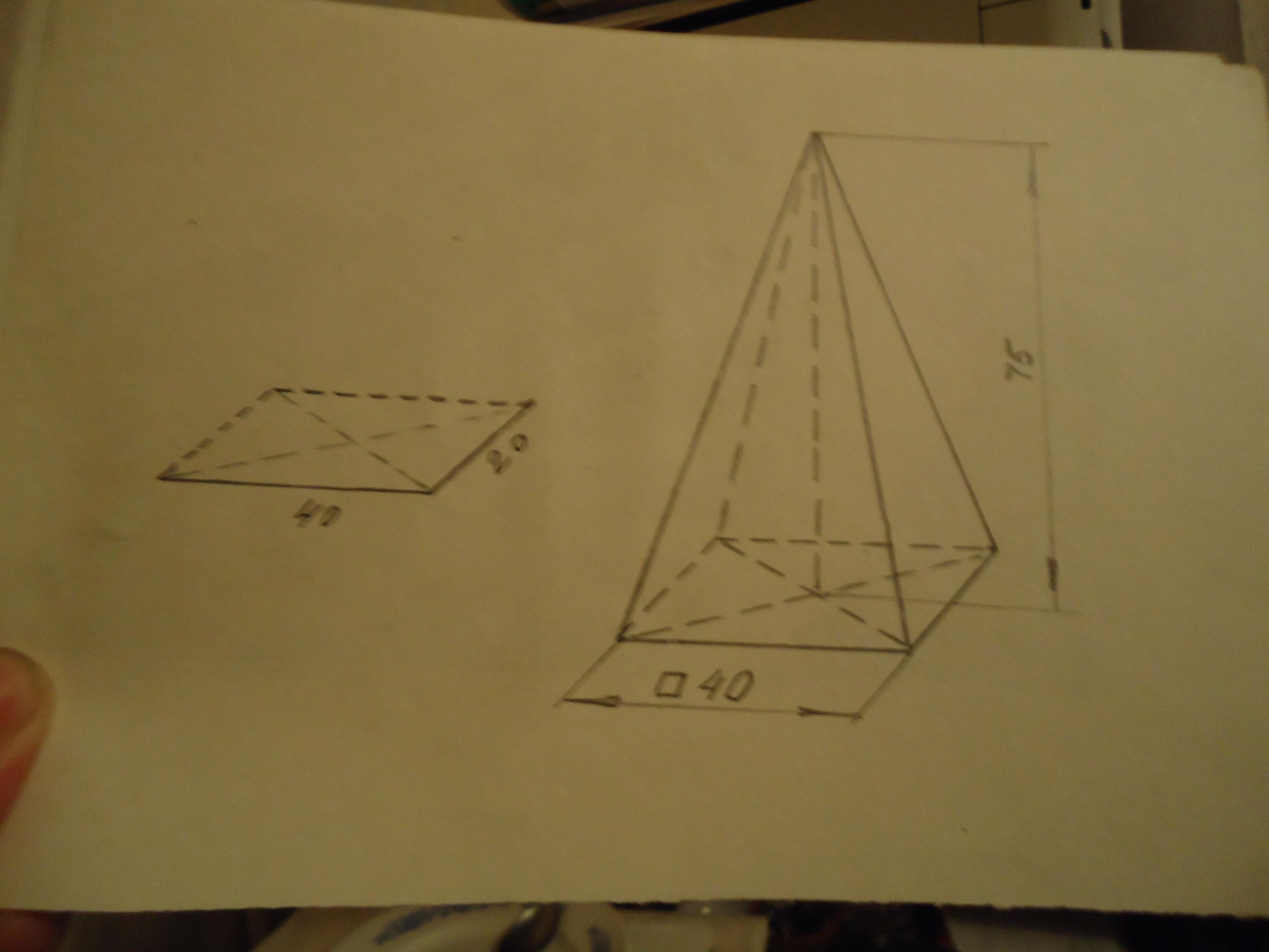 построить перспективу четырехугольной пирамиды с длиной стороны основания 40 мм и высотой 75 мм