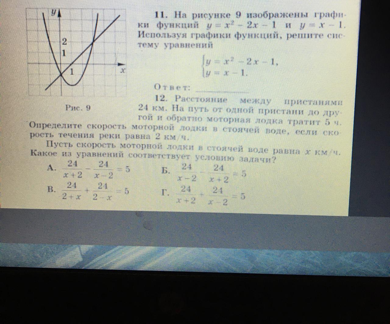11)График линейной функции у=х-1 пересекает график функции у=х²-2х-1 в двух точках.