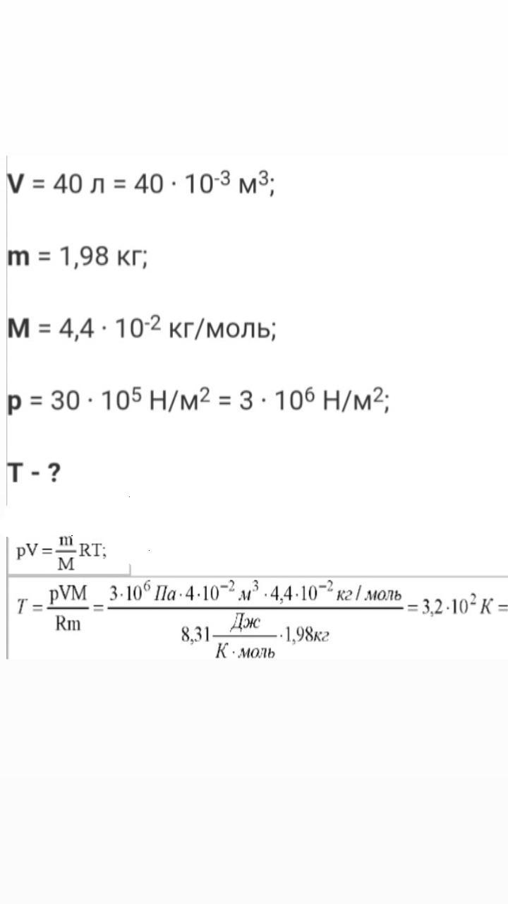 2.Баллон вместимостью 40 л содержит 1,98 кг углекислого газа (СО2). Баллон выдерживает давление 3·106 Па. При какой температуре возникает опасность взрыва?