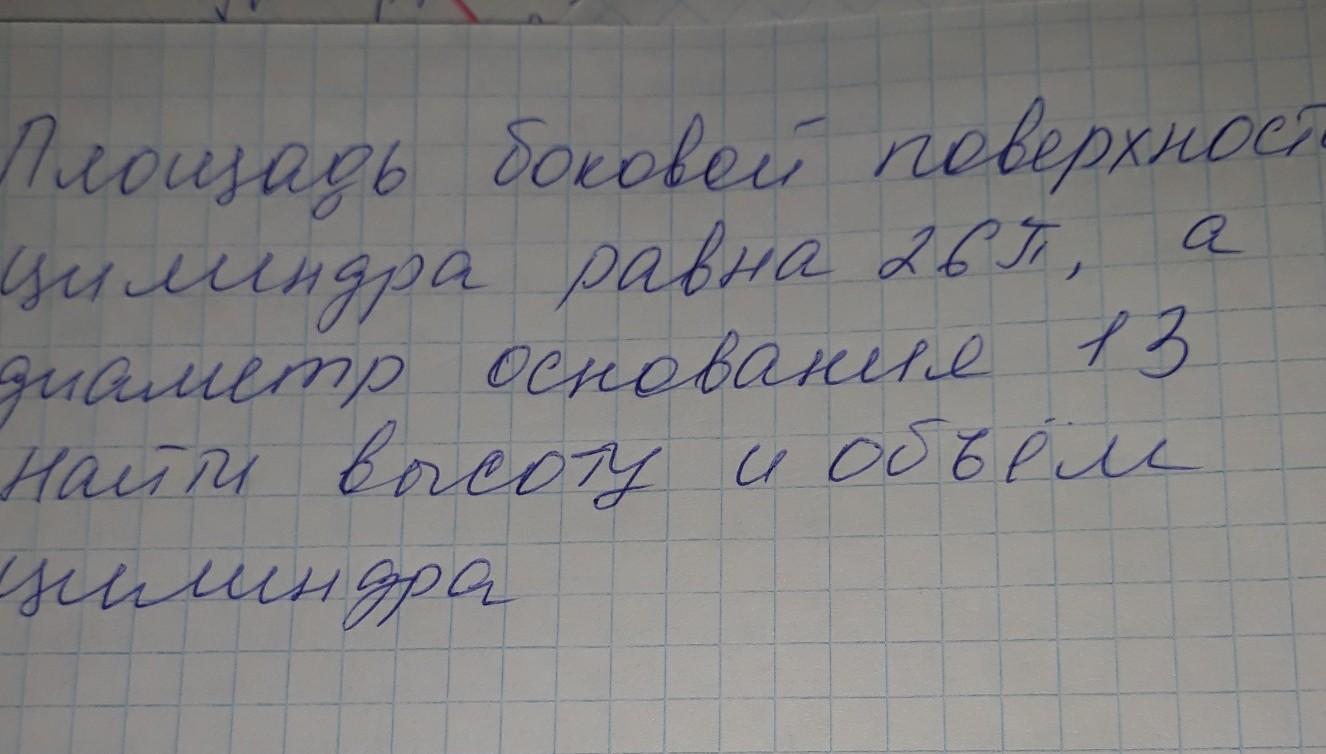 S= 2πRh ⇒ h= S/2πr =26π/(2π*6.5) = 2