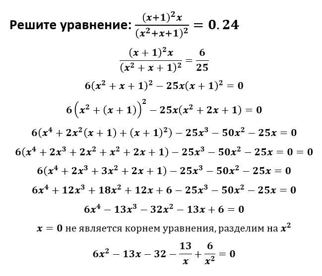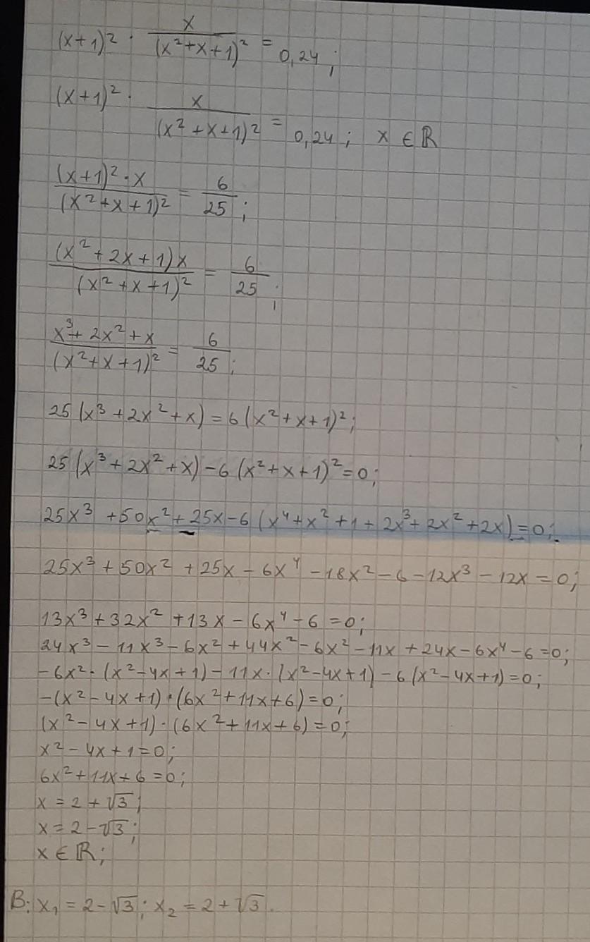 Решите уравнение (x+1)^2*x/(x^2+x+1)^2=0.24