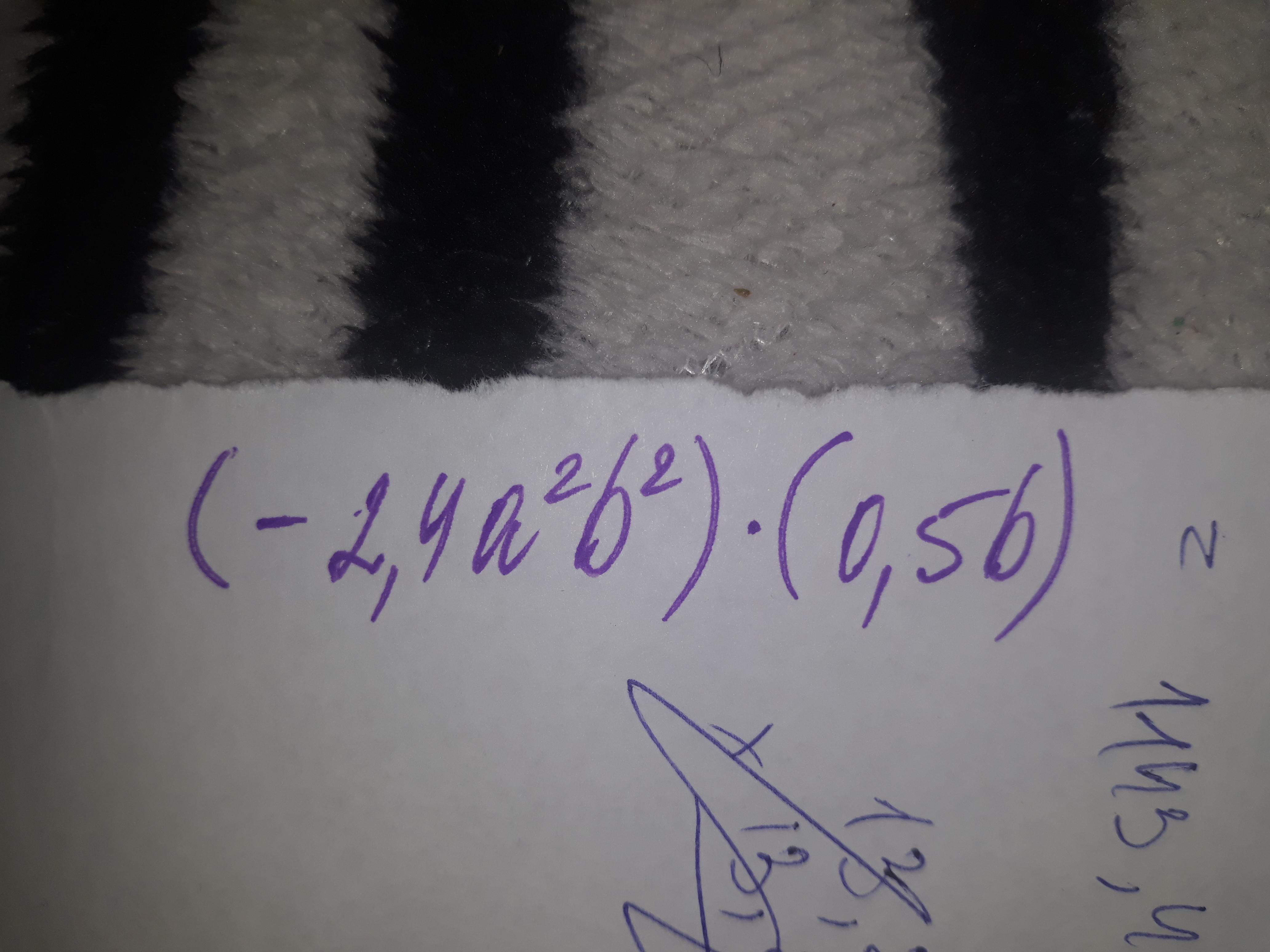 -2.4a^2b^2 * 0.5b = -2.4/2 * a^2 * b^2 * b = -1.2a^2b^3